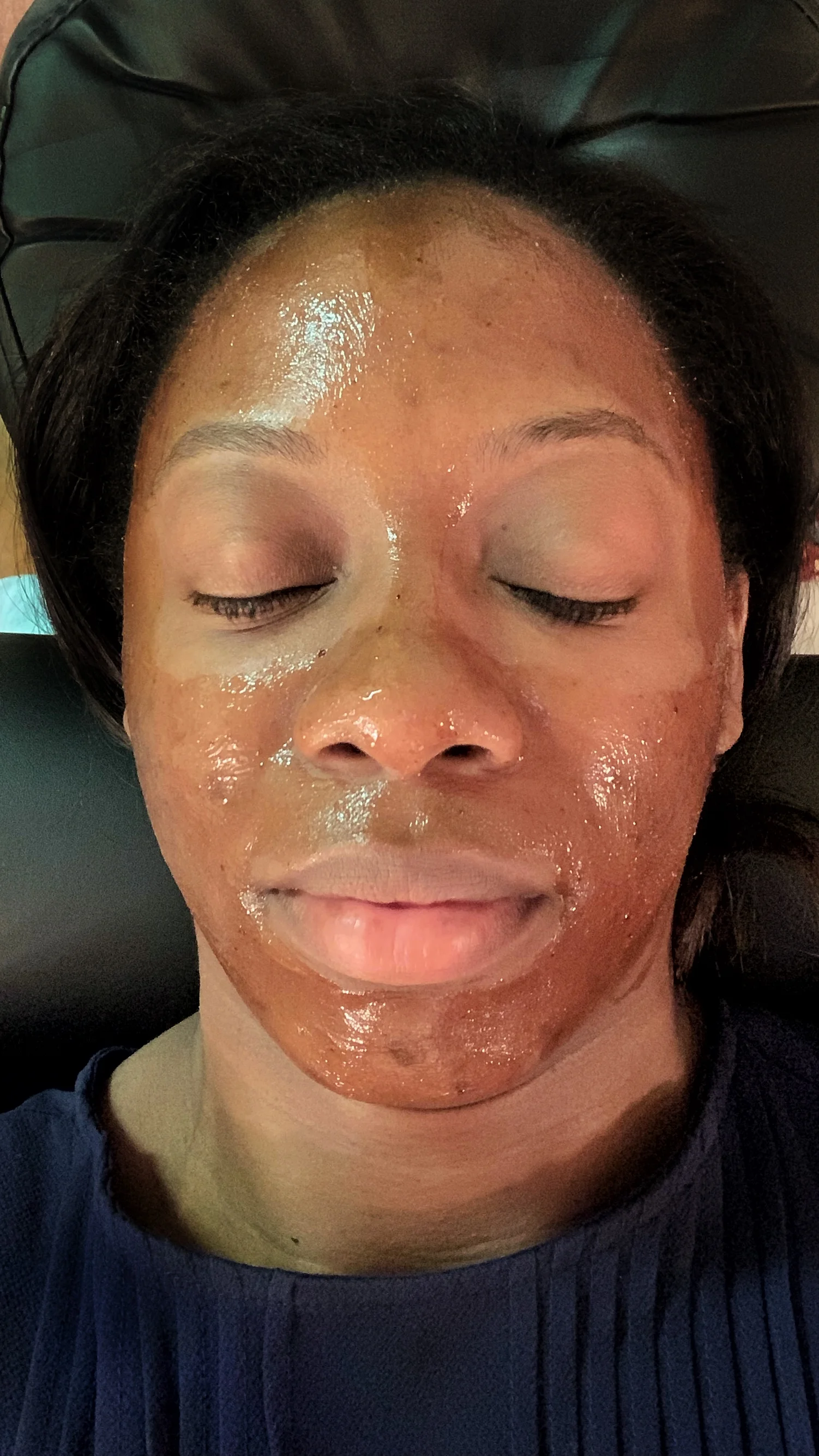 There was no doubt in my mind that I was going to love something designed for me. It was everything I needed and more. Shortly after washing my face, a thin layer of the peel was applied. It smelled like pomegranate bliss. So I just kind of laid there and began to bask in luxury. Six minutes later, the peel was wiped away with a warm washcloth, and the best version of myself was revealed. A visible glow filled the room. My face was red, with no irritation or discomfort just me and my red face. I have never seen the blood in my face move to the surface; I was shocked and amazed. I looked like a blushing Rudolph, and I was speechless at how amazingly soft my face felt immediately after application.